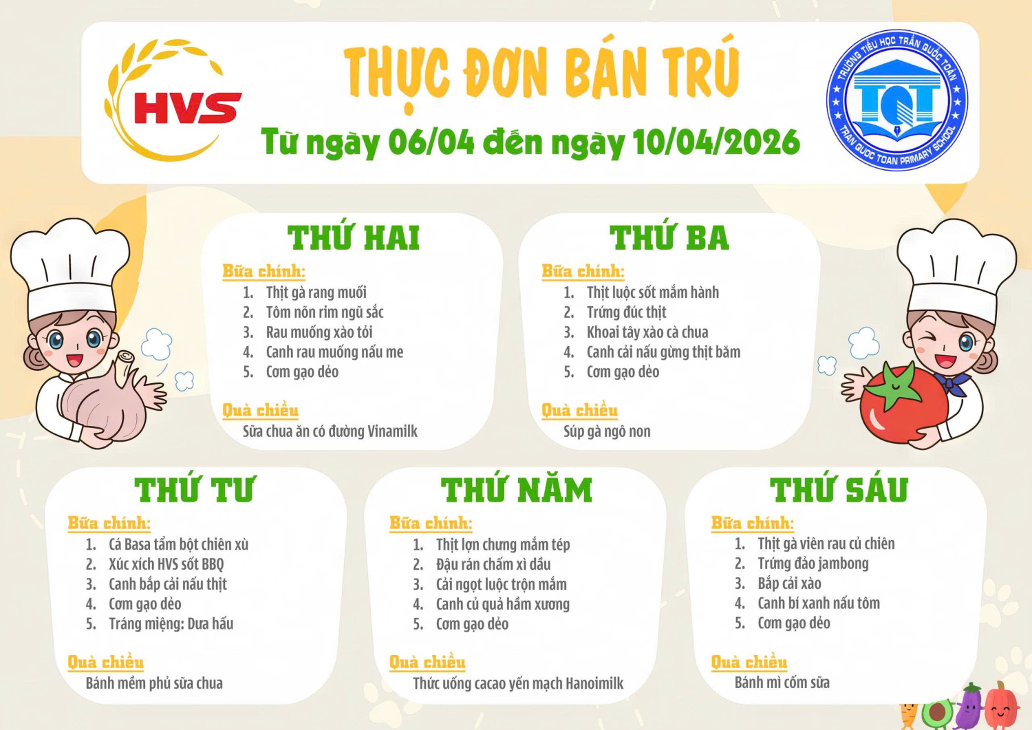 THỰC ĐƠN BÁN TRÚ TỪ NGÀY 06/4/2026 ĐẾN 10/4/2026