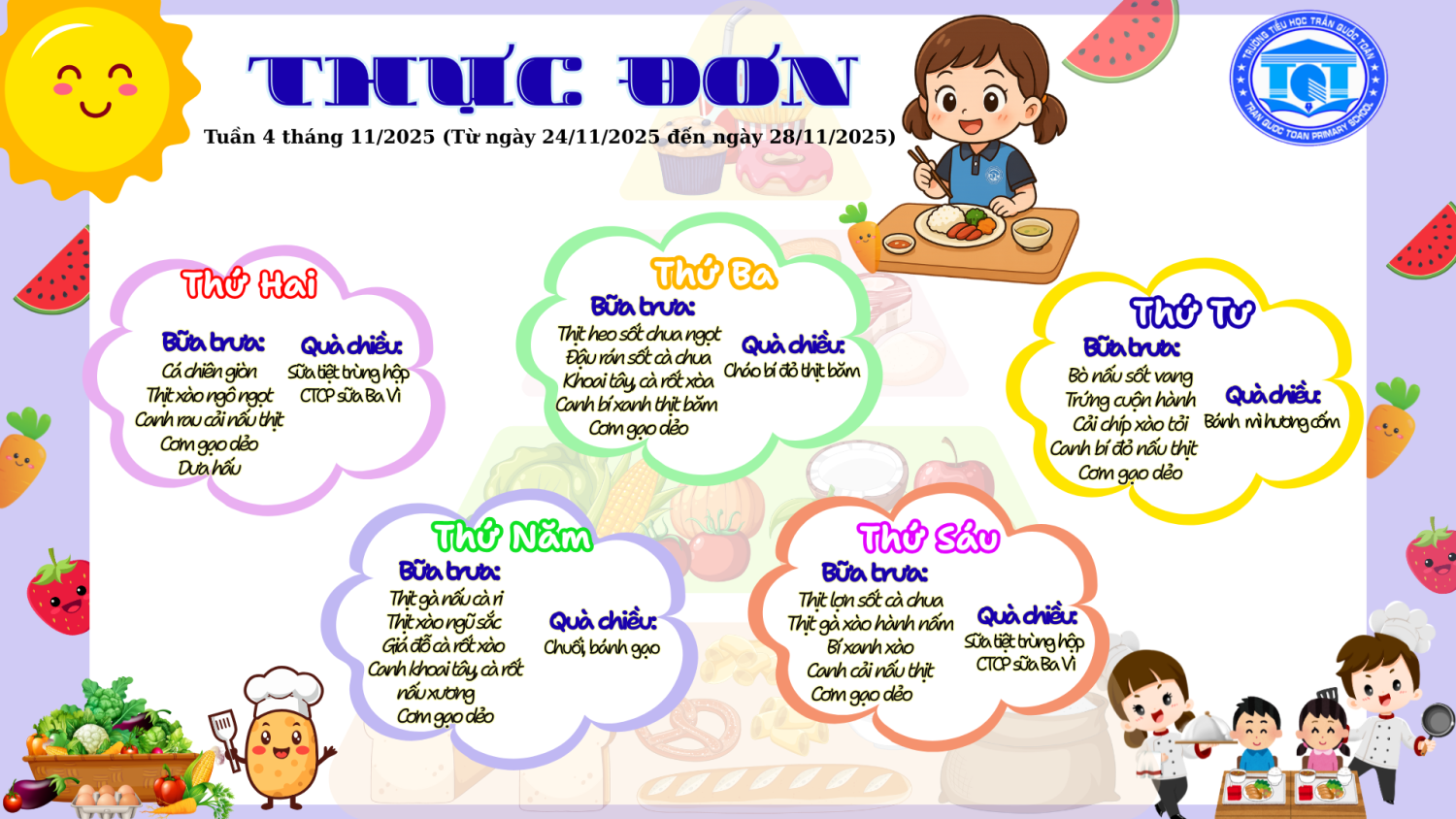 Thực đơn tuần 4 tháng 11 (từ ngày 24/11 đến ngày 28/11)